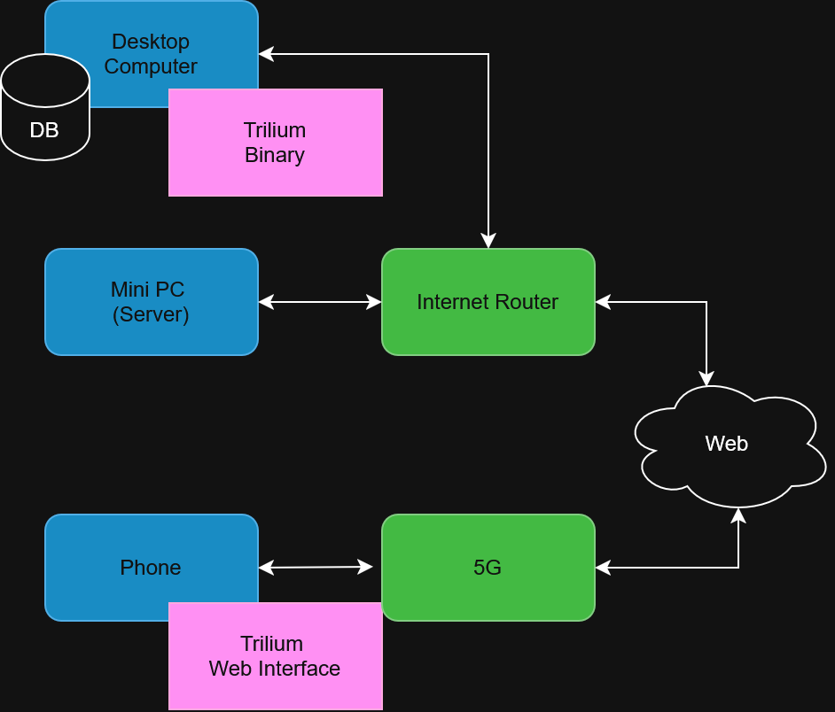 Once WireGuard is enabled on the phone, all traffic is encrypted and sent through a tunnel to the Mini-PC. The Mini-PC acts as the VPN endpoint and routes traffic either to the Trilium server locally or out to the Internet.
