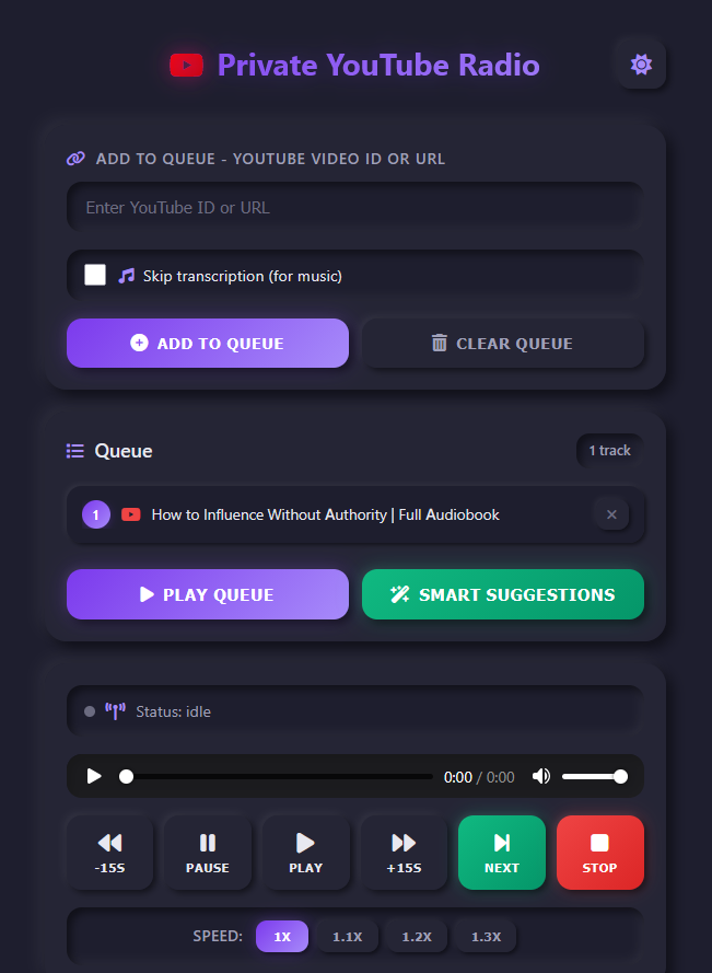 I've since improved several parts of the system, such as having AI suggest other videos to queue based on the last few tracks I listened to. I also added the ability to generate a summary of all the audiobooks I listened to and create an audio summary that I can listen back to.